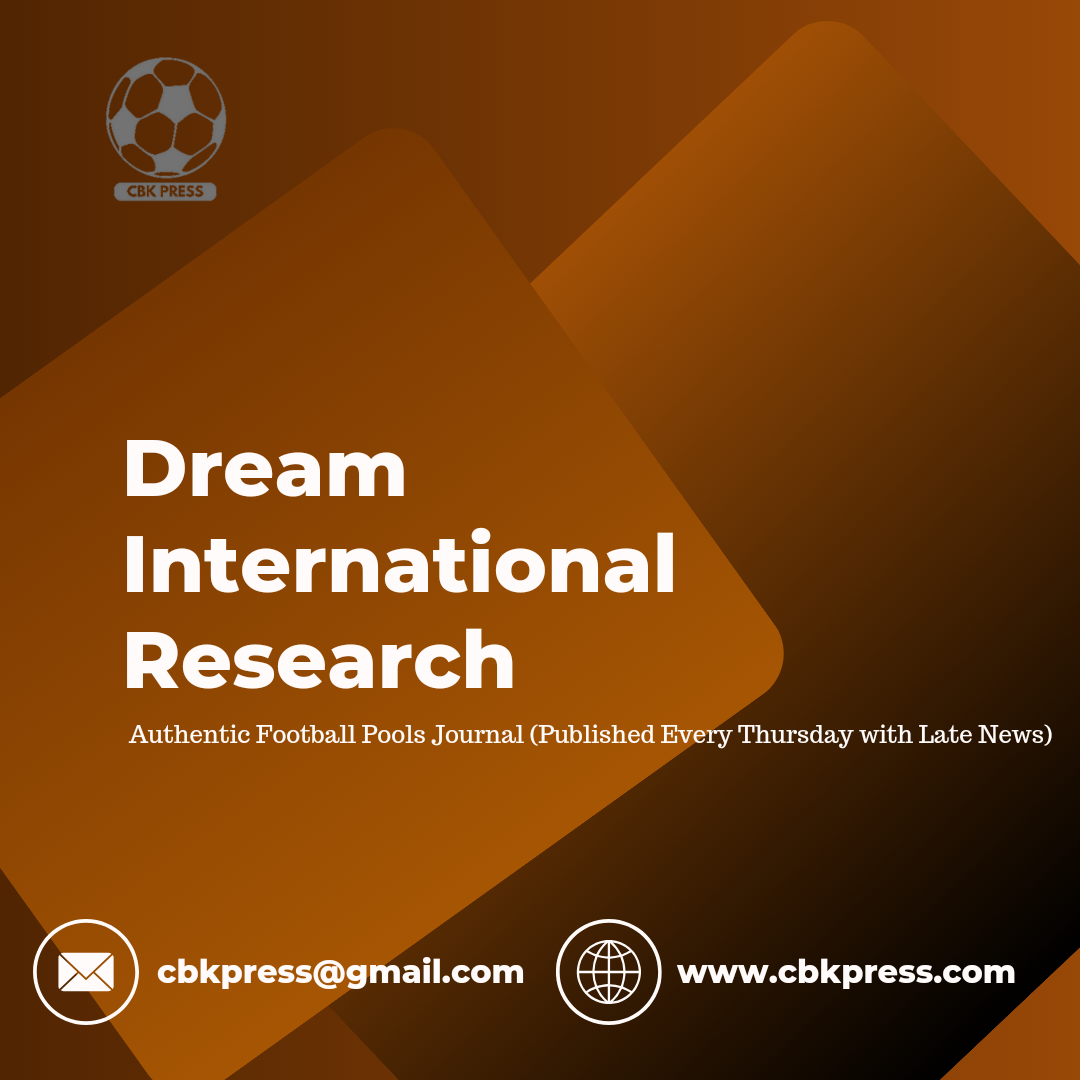 Dream International Research is an authentic football pools papers that provides you with a thoroughly researched compilation of the football pools sequence, up-to-date pools information, and key movements by a team of respected compilers.